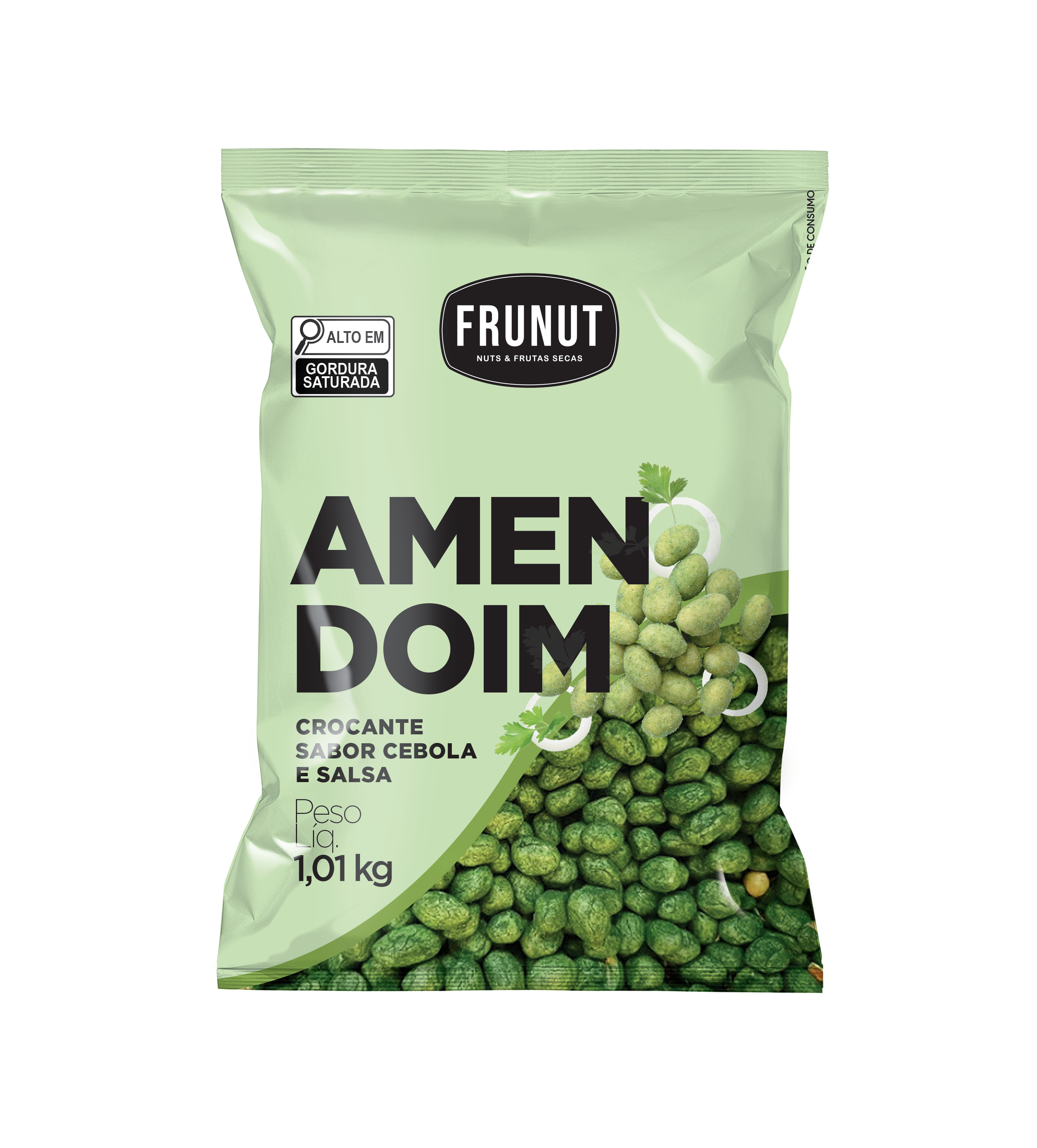 Amendoim com casca crocante com sabor de cebola e salsa.